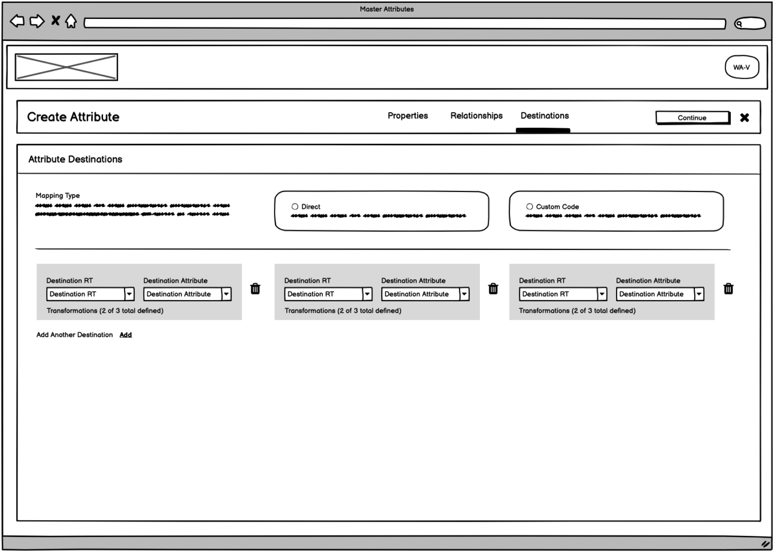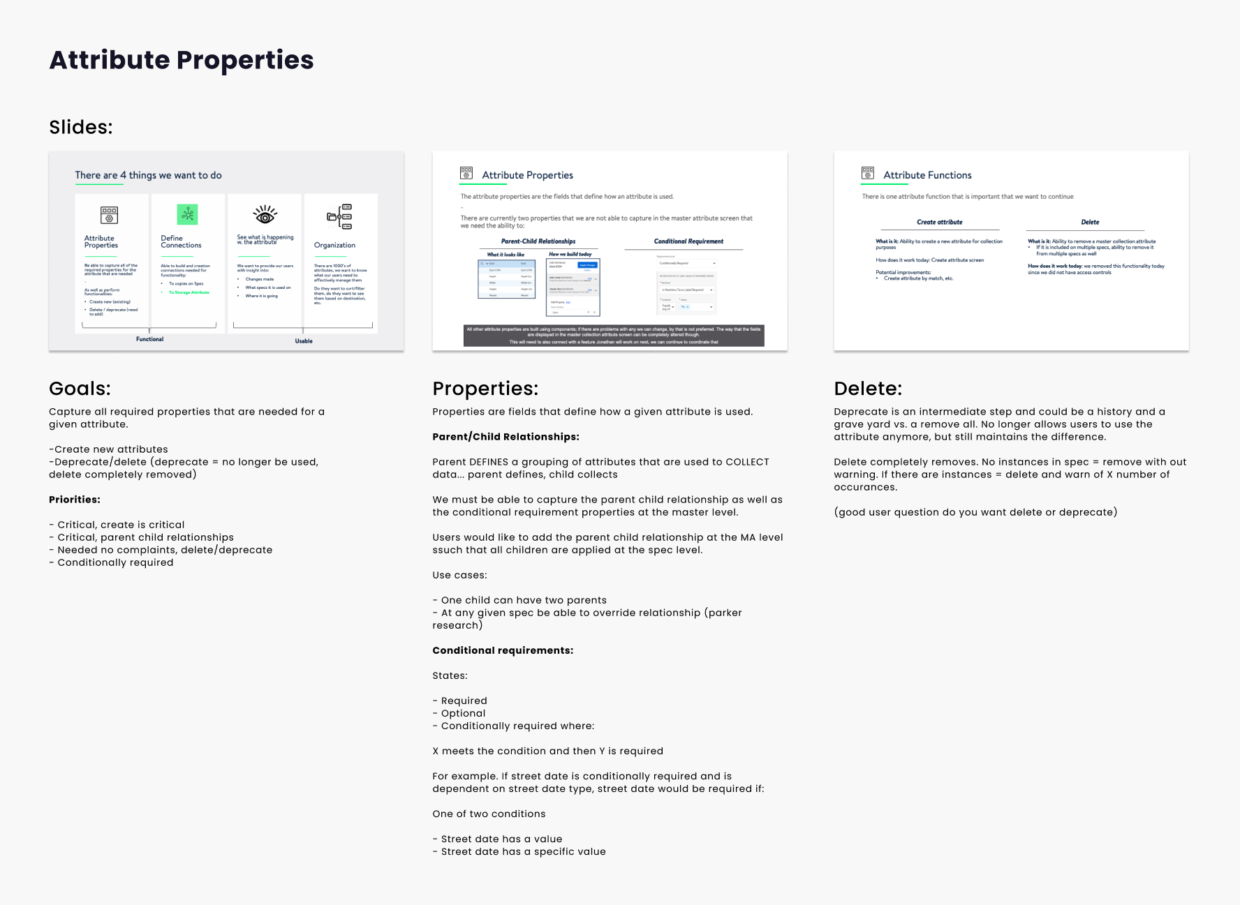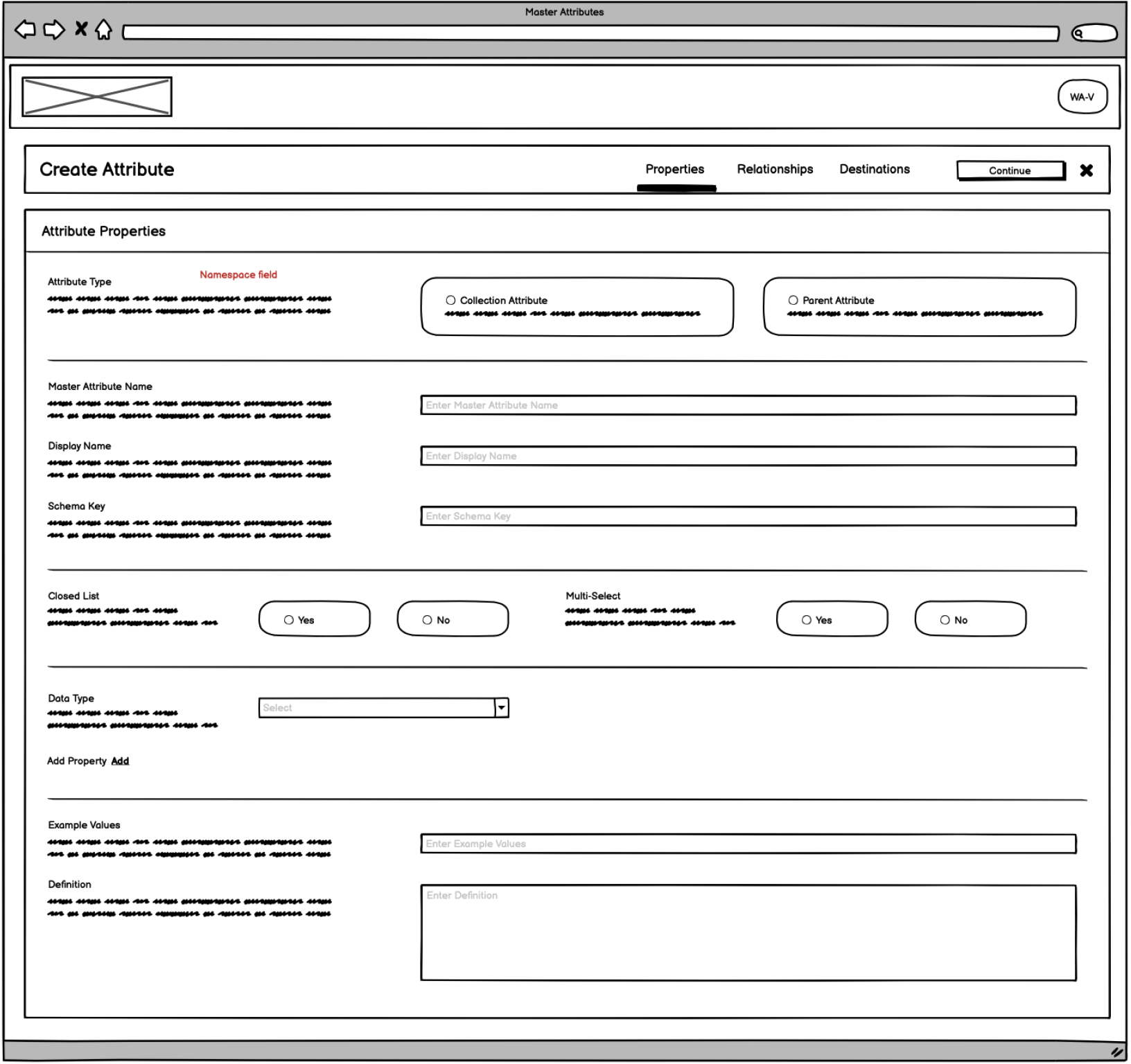 Wireframes are a very quick way to validate solutions and gain stakeholder feedback. Here are just a few wireframes used to validate creation and management of both Collection and Parent attributes.