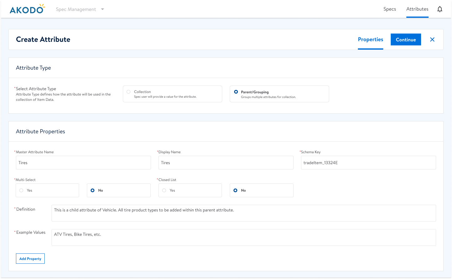 One of the most important functions of our tool, Akodo, allowed stakeholders to create attributes. These attributes came in two flavors. Collection attributes and parent attributes. Collection attributes defined how the item data was to be described (aka attributed) and defined how the data was to be collected. Parent (or Storage) attributes allowed Collection child attributes to be assigned and organized hierarchically to a container (Parent) attribute.